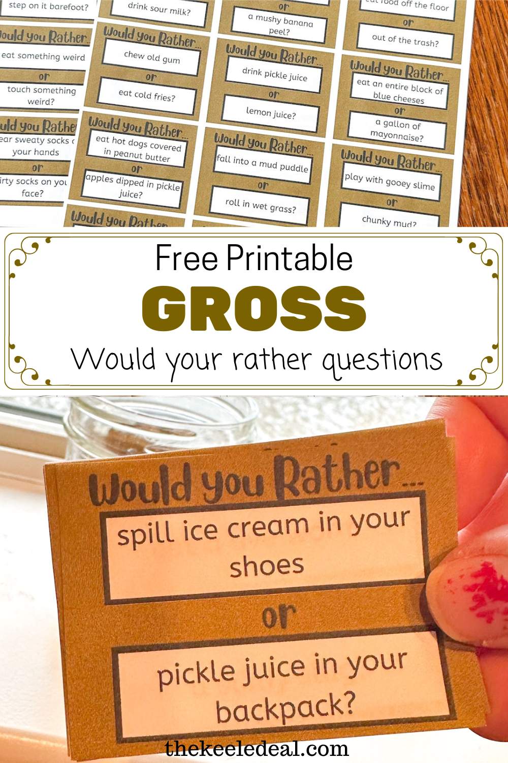 These Gross Would You Rather questions make great conversation starters and can be used in many ways, including: