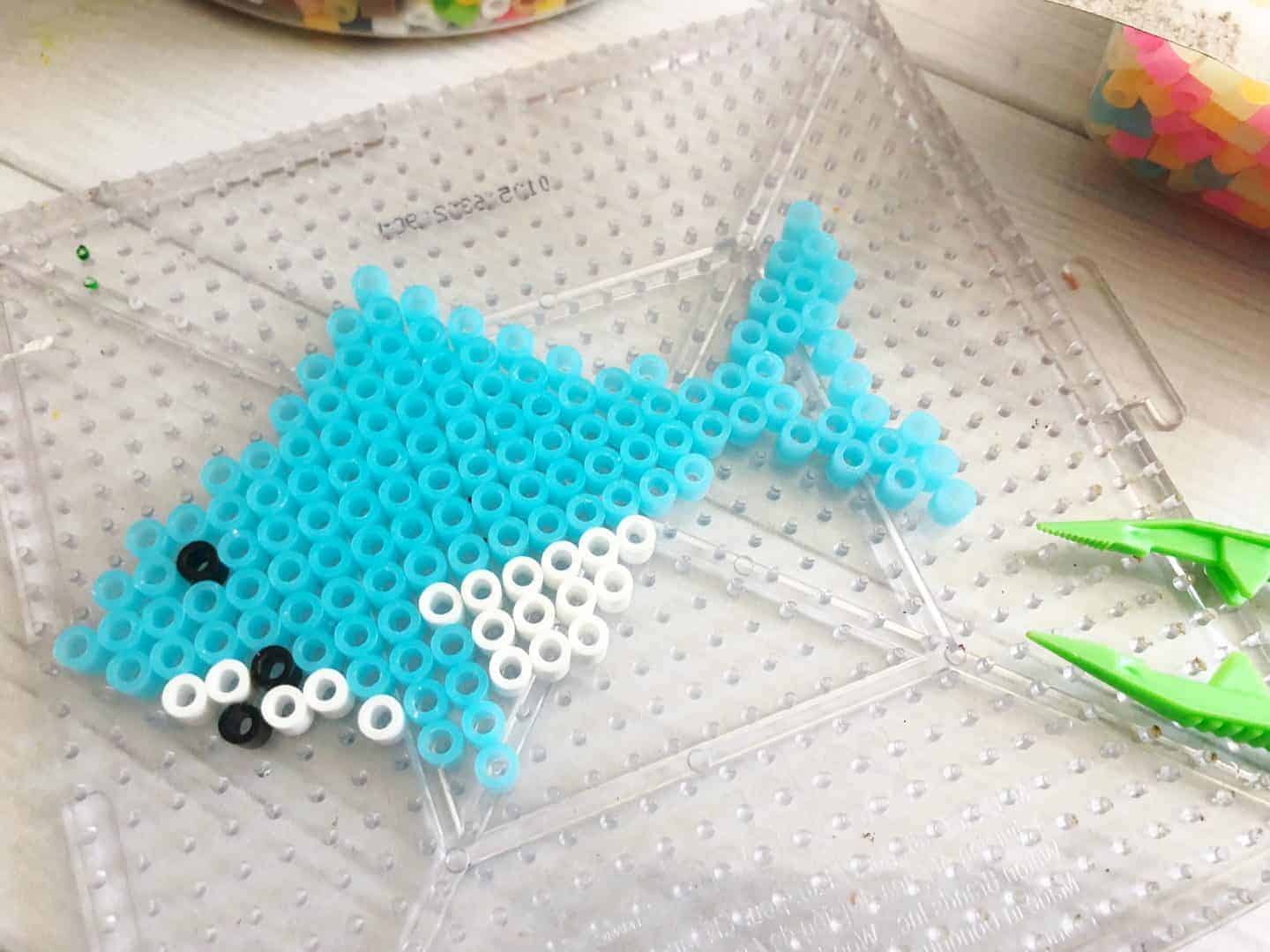 Hama beads are such a fun way to do crafts with kids. This shark keychain is adorable and easy to make with the free printable template you can get here.
